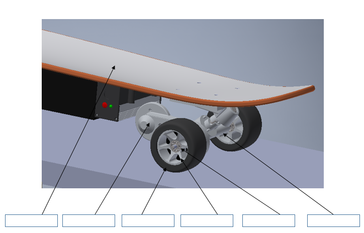 Axle - Deck - Rim - Ball bearing - Tyre - Motorization
