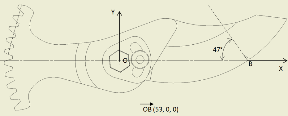 En appliquant le théorème du moment résultant statique, déterminer la force que fera la branche sur la lame. Remplir le document réponse.