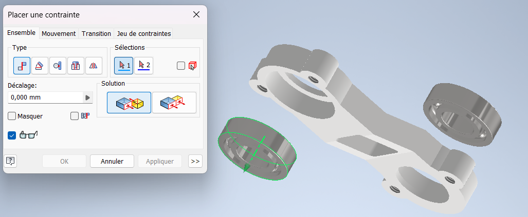 Pour associer les trois pièces faire