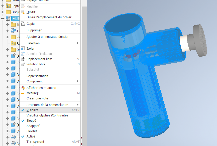 Ouvrir le fichier S1Appareil_de_massage.iam puis rendre invisible le bâti.