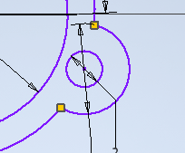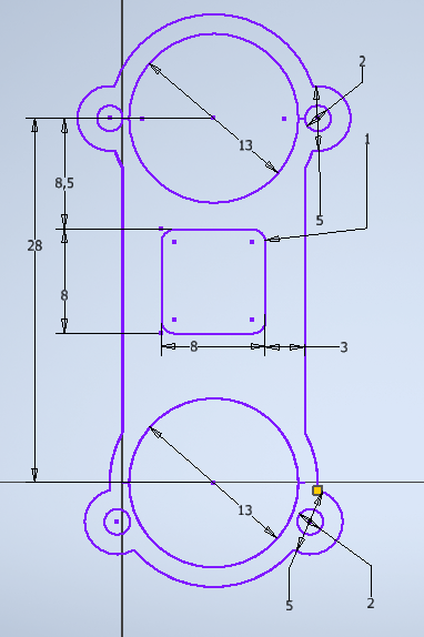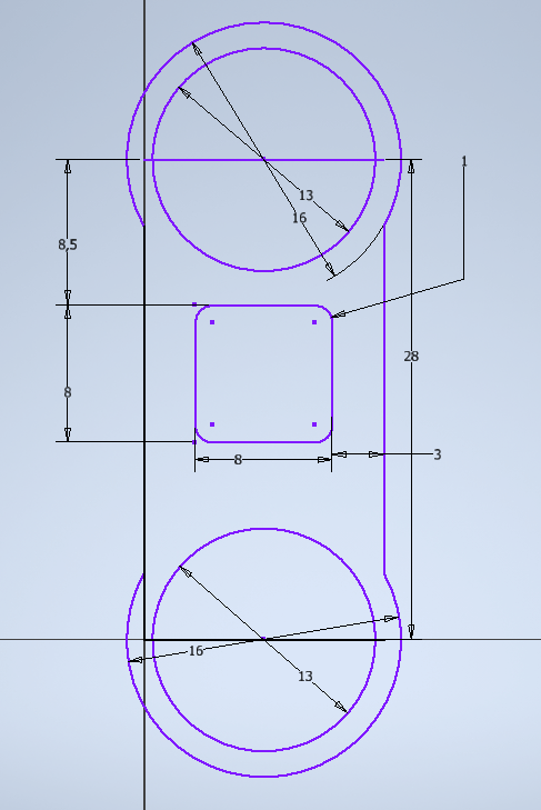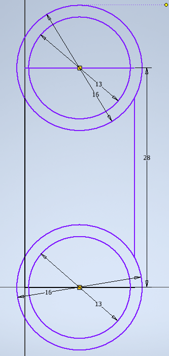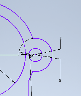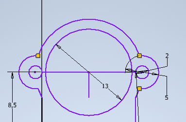 Etape 5 - tracer un trait au centre du cercle puis utiliser l'outil Symètrie - on aurait pu faire ça avec toute la pièce |