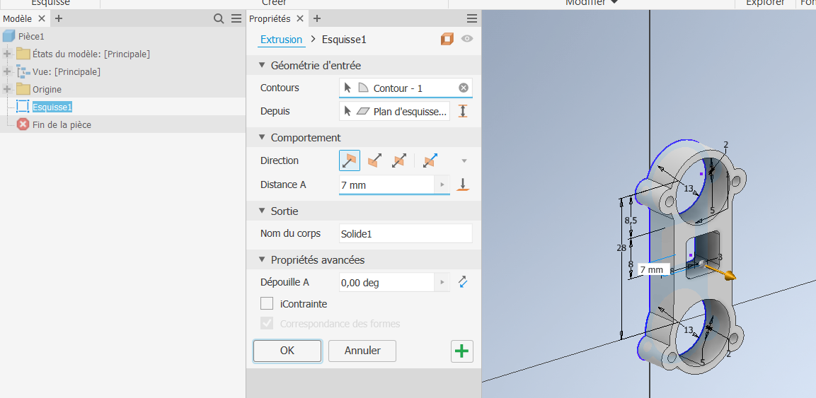 Cours : Pour réaliser une forme prismatique, il faut créer une esquisse puis l'extruder.