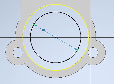 Créer une esquisse en projetant la géomètrie et en créant un cercle de diamètre 10.