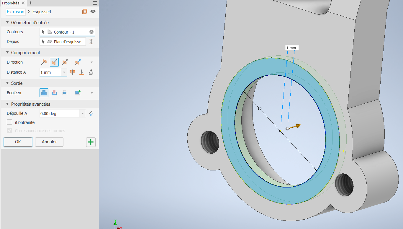 Extruder de 1 mm et faire la même opération de l'autre coté de la pièce.