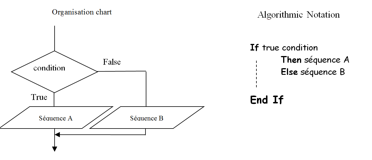 An algorithm can be described under a graphic form (Algorythm or Organisation chart) or under a literal form (algorithmic notation).