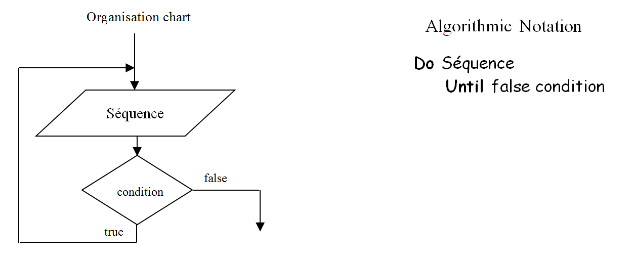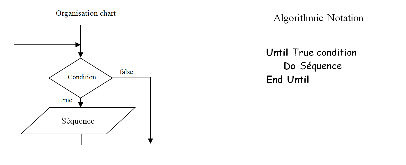 At first, one tests the condition. The sequence is executed until the condition is true.