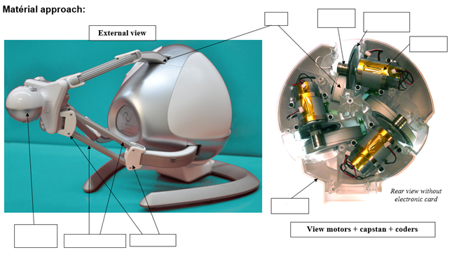 - Effector with buttons - Incremental coder disc - Links parts - Base - Cable capstan - Arm - Motor - Connecting rods