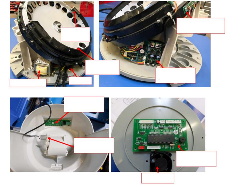 Trapdoor motor - Fuse - Electronic cart - Low position Sensor - Transformer - High position Sensor