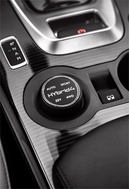 The innovative architecture of Hybrid4 also brings motorists four driving settings, selected using a thumbwheel on the central console.