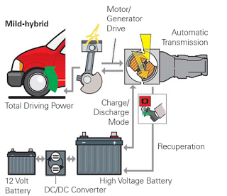 There are two types of mild hybrid – parallel and series. A parallel mild hybrid uses the same ‘Stop-Start’ system as a micro hybrid plus it uses the electric motor to supplement the engine during acceleration. It cannot usually power the car by the electric motor alone. It is powered by a battery which is charged either by capturing energy usually lost through braking or by the engine slightly over-performing at cruising speed. A series mild hybrid propels the car by an electric motor which is charged by a petrol engine or during deceleration.