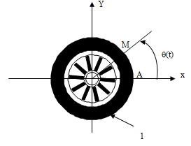 Soit un solide 1 en rotation autour d’un axe z passant par O, la trajectoire des points M du solide est un cercle de centre O et de rayon OM. A t = 0 s, M est en A (position initiale). A t quelconque, M a décrit un arc de cercle.